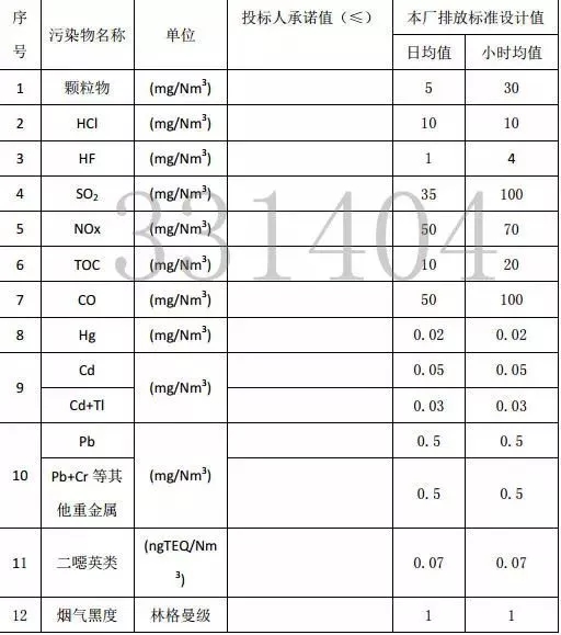 滿足國標《生活垃圾焚燒污染控制標準》(GB18485-2014)和最新歐盟2010/75/EU標準的要求,并適當提高部分指標的排放標準,以適應(yīng)經(jīng)濟發(fā)展對環(huán)境保護的需要。煙氣排放污染物排放濃度指標表如下: