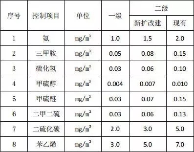 卸料大廳采用離子氧送風(fēng)除臭系統(tǒng),垃圾池間采用化學(xué)洗滌除臭系統(tǒng),廠界惡臭污染物執(zhí)行《惡臭污染物排放標準》(GB14554-1993)中的二級新建項目標準限值。惡臭無組織排放執(zhí)行以下標準: