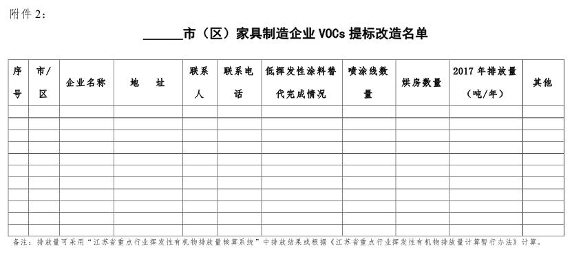為落實“兩減六治三提升”《江蘇省揮發(fā)性有機物污染治理專項行動實施方案》的要求,完成我市家具制造行業(yè)揮發(fā)性有機物(以下簡稱“VOCs”)的提標改造治理,降低VOCs的排放總量,改善我市環(huán)境空氣質(zhì)量,特制定本方案。