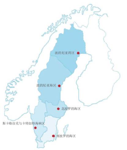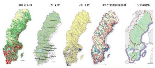 2000年,《歐盟水框架指令》開始實施,歐盟各成員國的水資源管理工作的開展更協(xié)調(diào)、更統(tǒng)一。自2004年起,為了更有效地管理水環(huán)境,瑞典被劃分為五大水資源區(qū)(如圖1、2所示),每個區(qū)包含多個江河流域。瑞典總共有119個主要的江河流域,這些流域是地方水資源管理工作的起點。這五大水資源區(qū)是按照它們與海床的地理區(qū)域關系劃分的,這些海床包括:波的尼亞灣區(qū)、波的尼亞海區(qū)、北波羅的海區(qū)、南波羅的海區(qū)、斯卡格拉克與卡特加特海峽區(qū)等。此后瑞典在五大水資源區(qū)開展水資源管理工作。