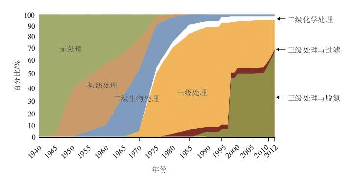 如今,瑞典所有城市家庭的污水在排放到自然之中之前都得到了處理。超過95%的家庭污水都經(jīng)過生物和化學處理。地處城市地區(qū)以外的約70萬個家庭擁有小型污水處理系統(tǒng)。與擁有自己專門的污水處理廠的工業(yè)源水排放相比,城市地區(qū)以外的家庭所排出的這些小規(guī)模且零散的營養(yǎng)物質(zhì),是瑞典湖泊、河流、沿海水域的富營養(yǎng)化問題更重要的原因。瑞典污水處理問題的歷史發(fā)展如下圖所示。