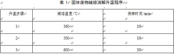 中,按照表 1 的升溫程序進(jìn)行堿熔消解。待溫度降至室溫后,將鎳坩堝取出,用約 80 ml 熱