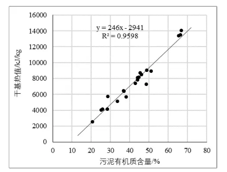 圖2 污泥有機(jī)質(zhì)含量與熱值的關(guān)系