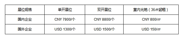 注:1、標(biāo)準(zhǔn)展位:高2.5米,提供三面圍板、中文楣板制作、洽談桌一張、折椅兩把、射燈兩只、10A/220V插座一個(gè);