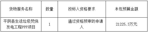 二、采購(gòu)項(xiàng)目名稱(chēng):平陰縣生活垃圾焚燒發(fā)電工程PPP項(xiàng)目