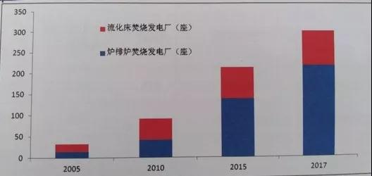 我國焚燒發(fā)電的主要模式有:流化床焚燒發(fā)電廠和爐排爐焚燒發(fā)電廠兩種。2010年以前,兩種發(fā)電廠數量基本相等。2015年以后,爐排爐焚燒發(fā)電廠比例提升,現(xiàn)在成為主流,流化床焚燒發(fā)電廠數量降至25%。