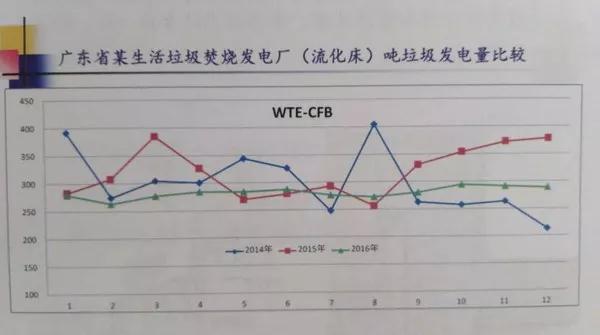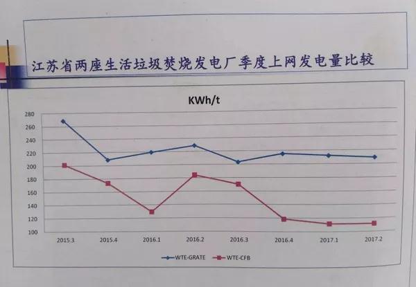 上述圖表可以看出,爐排爐垃圾發(fā)電上網量較流流化床垃圾發(fā)電量大。而且隨著時間推移,爐排爐垃圾焚燒發(fā)電工藝發(fā)電量有明顯上升趨勢,而流化廠工藝這種趨勢并不明顯。