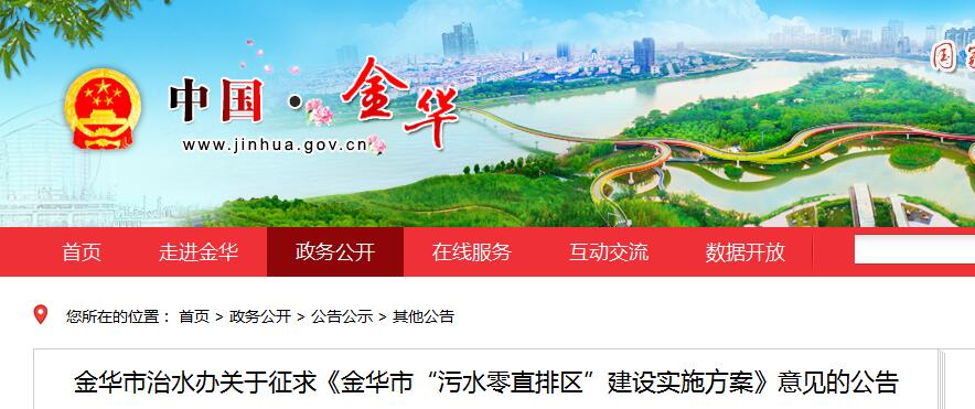 近日,浙江金華市治水辦《金華市“污水零直排區(qū)”建設(shè)實施方案》(征求意見稿)發(fā)布,詳情如下: