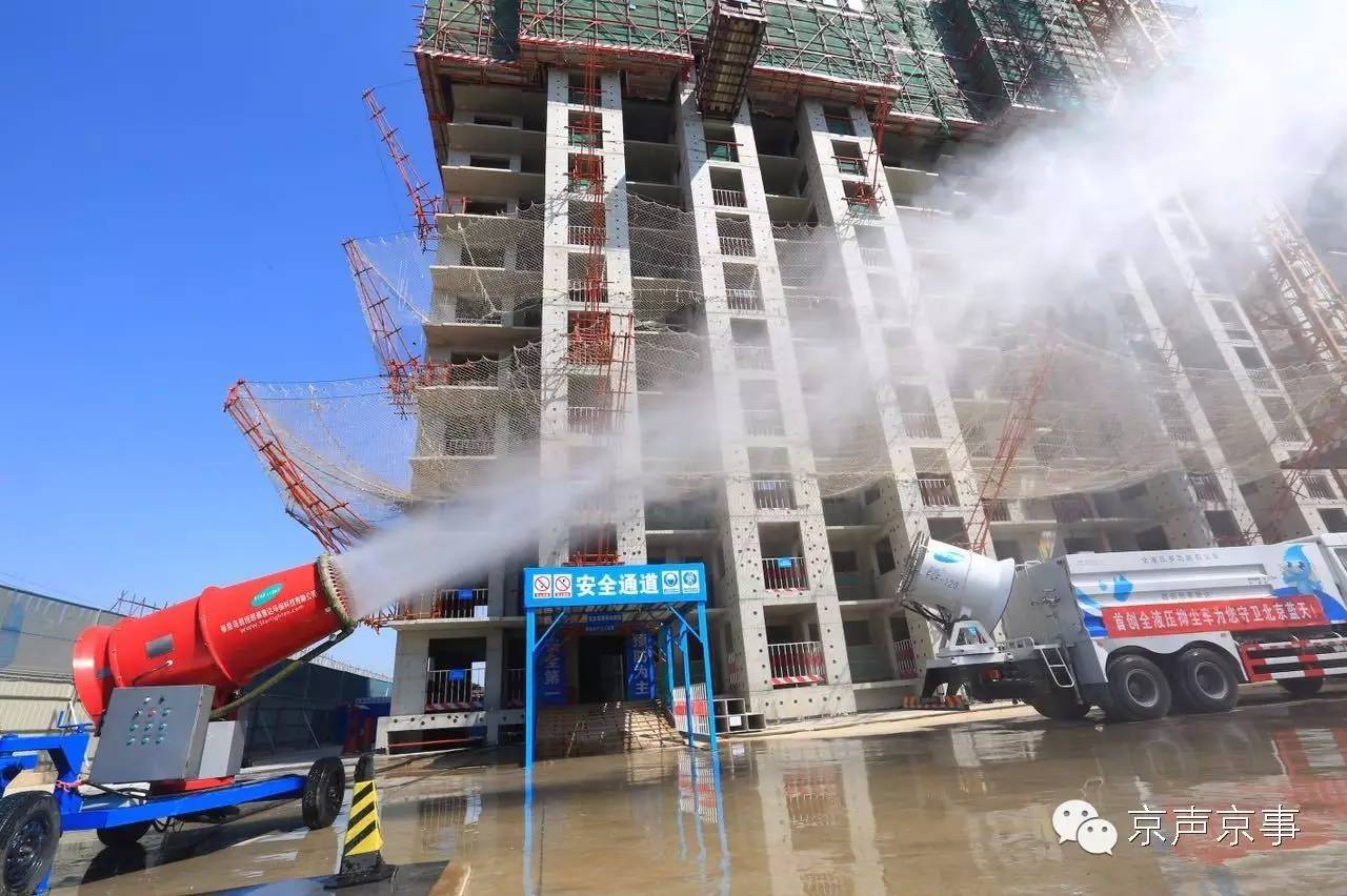 2016年,北京朝陽(yáng)區(qū)用抑塵射霧器治理工地?fù)P塵,這個(gè)多功能抑塵射霧器是“藍(lán)天計(jì)劃”引入的新技術(shù)之一。攝影人民日?qǐng)?bào)記者王昊男