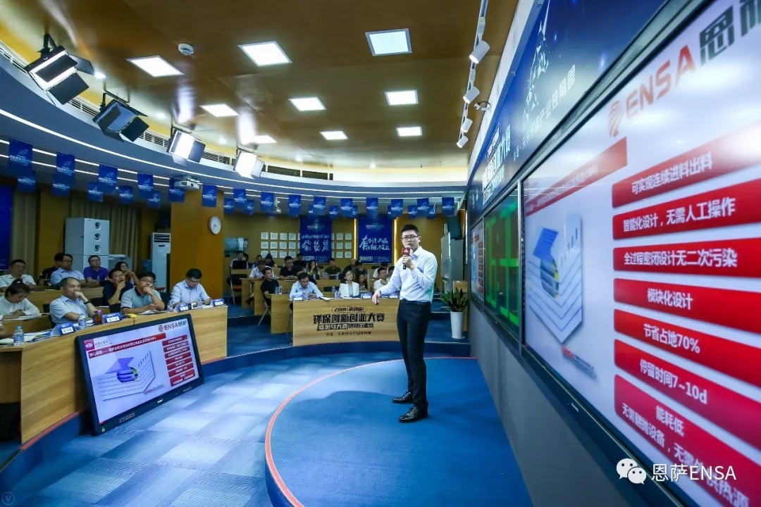 恩薩馮磊攜“C-MBT大規(guī)模連續(xù)好氧機(jī)械生物處理技術(shù)”做參賽路演,從容應(yīng)對(duì)導(dǎo)師的提問,從10名參賽選手中脫穎而出,成功獲得晉級(jí)總決賽的資格。