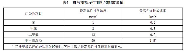 5.2.1 排氣筒揮發(fā)性有機(jī)物排放濃度和排放速率應(yīng)執(zhí)行表1規(guī)定的限值。