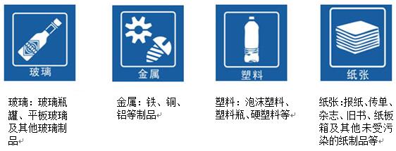2.每類生活垃圾下設(shè)典型組分的小標(biāo)志,具體標(biāo)志如下: