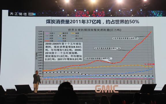 城市化過(guò)程當(dāng)中、工業(yè)化過(guò)程當(dāng)中需要用能源,需要供電、供熱等等。在中國(guó)我們過(guò)去全世界煤炭使用的情況,在中國(guó)支持工業(yè)化、城市化的過(guò)程主要能源是煤炭。特別是在2000年之后紅色的煤炭消耗量的增量在飛速的增長(zhǎng)。這三個(gè)指標(biāo)上可以看出,我們的工業(yè)化速度是非??斓?。