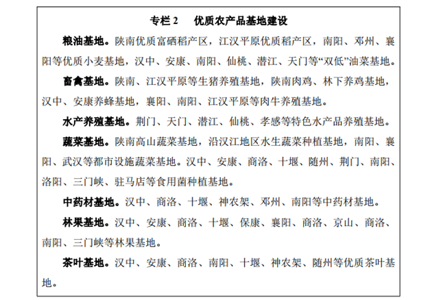 推進現(xiàn)代農(nóng)業(yè)發(fā)展。發(fā)展農(nóng)產(chǎn)品加工業(yè),統(tǒng)籌推進農(nóng)產(chǎn)品初加 工、精深加工和綜合利用加工,延長產(chǎn)業(yè)鏈條。拓展農(nóng)業(yè)多功能性, 推進農(nóng)業(yè)與旅游、教育、文化、健康養(yǎng)老等產(chǎn)業(yè)深度融合,發(fā)展休 閑農(nóng)業(yè)、觀光農(nóng)業(yè)、體驗農(nóng)業(yè)、創(chuàng)意農(nóng)業(yè)等新業(yè)態(tài)。做好農(nóng)村產(chǎn)業(yè) 融合發(fā)展“百縣千鄉(xiāng)萬村”試點示范工作,打造一批農(nóng)村產(chǎn)業(yè)融合發(fā) 展示范園。加快農(nóng)業(yè)科技創(chuàng)新能力條件建設(shè),聯(lián)合開展農(nóng)業(yè)氣象、 病蟲害監(jiān)測預警、動植物疫病防治等關(guān)鍵技術(shù)研發(fā)和基礎(chǔ)設(shè)施建 設(shè)。支持漢中、南陽、十堰、荊門、仙桃、潛江、武漢等國家農(nóng)業(yè) 科技園建設(shè),推進農(nóng)業(yè)科技創(chuàng)新聯(lián)盟發(fā)展。建立全程可追溯、互聯(lián) 共享的農(nóng)產(chǎn)品質(zhì)量安全信息平臺。