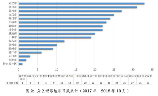1.2017年至2018年10月,各市州累計(jì)新落地項(xiàng)目數(shù)情況: