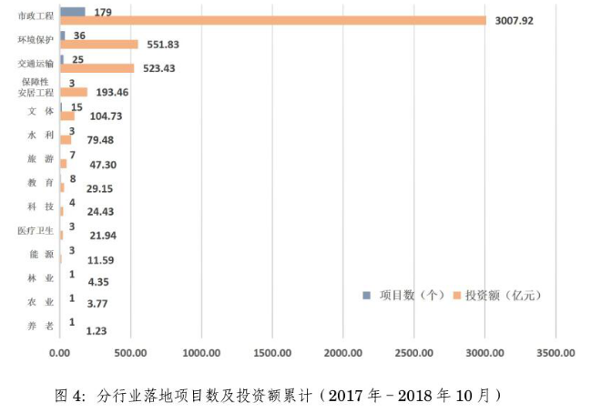 2018年10月,民營企業(yè)以聯(lián)合體牽頭方或者單獨(dú)作為社會(huì)資本方落地項(xiàng)目3個(gè)。2017年至2018年10月累計(jì)落地項(xiàng)目114個(gè),占39.45%。