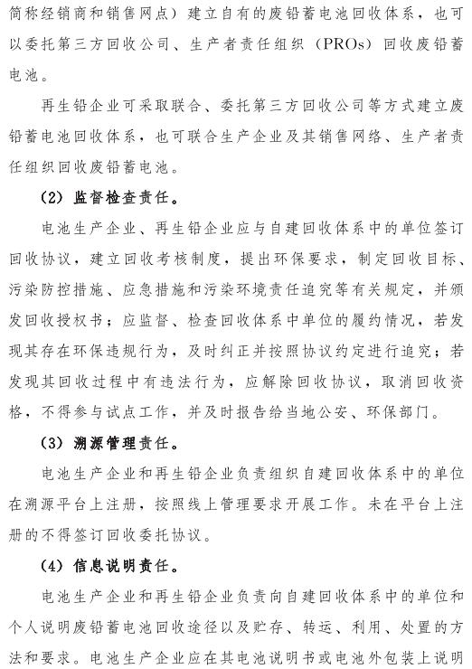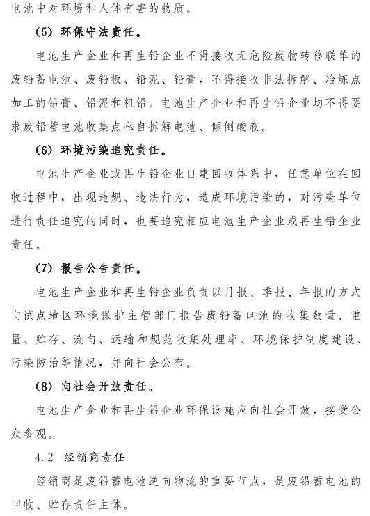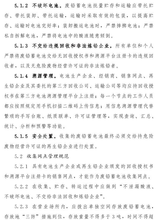 推動落實生產者責任延伸制度,由鉛蓄電池生產企業(yè)依托自有銷售渠道建立廢鉛蓄電池逆向物流回收體系,持危險廢物經營許可證的再生鉛企業(yè)可通過自主回收、聯(lián)合回收或委托回收等方式建立回收體系。鼓勵生產企業(yè)和持證企業(yè)進行信息溝通和密切合作,以市場為導向,建立穩(wěn)定的商業(yè)交易模式,并采取以舊換新等措施,不斷提高收集處理率。各回收體系收集的廢鉛蓄電池最終須交由具有危險廢物經營許可證的再生鉛企業(yè)利用處置。制定 《廢鉛蓄電池規(guī)范化管理指南》,明確回收體系中各環(huán)節(jié)、各責任主體責任及廢鉛蓄電池管理規(guī)范。參與廢鉛蓄電池回收的各責任主體須嚴格遵守 《廢鉛蓄電池規(guī)范化管理指南》的各項規(guī)定。