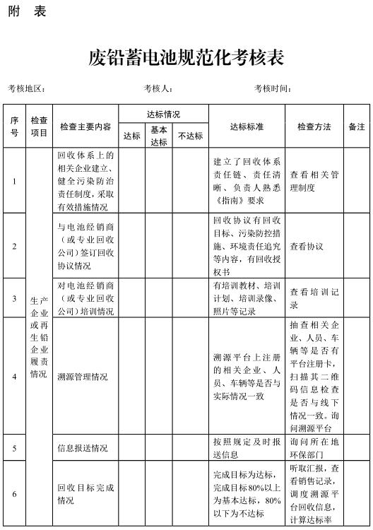 (三)加強督導考評。建立健全督導檢查、考核評價機制,加強對四個試點市廢鉛蓄電池回收處理體系建設情況的檢查考核,發(fā)現(xiàn)問題及時督查督辦,不斷修訂、完善制度,推動建立規(guī)范、高效、暢通的回收利用體系。