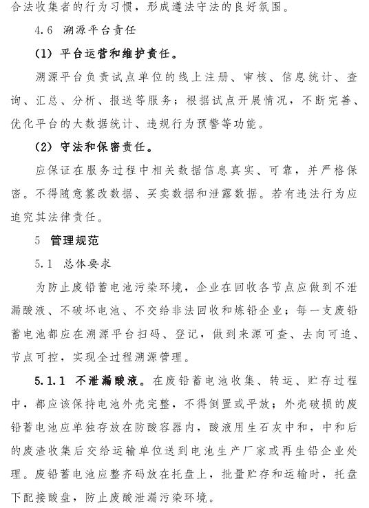 建立廢鉛蓄電池溯源管理平臺,探索廢鉛蓄電池全過程溯源管理模式,實行廢鉛蓄電池全過程線上信息跟蹤。鉛蓄電池生產企業(yè)、經銷商、銷售網點、再生鉛企業(yè)及其回收體系、運輸企業(yè)等參與廢鉛蓄電池回收的各責任主體,要在溯源管理平臺注冊登記。參與廢鉛蓄電池回收的各責任主體收到廢鉛蓄電池后及時粘貼二維碼、掃碼錄入信息,實現(xiàn)廢鉛蓄電池自產生至再生鉛企業(yè)來源可查、去向可追、全程可控的目標。