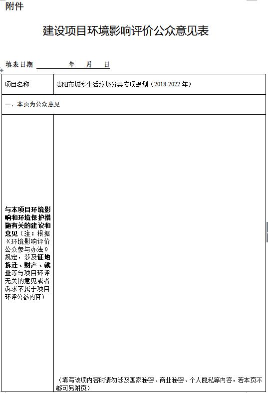貴陽市城鄉(xiāng)生活垃圾分類專項規(guī)劃(2018-2022年)環(huán)境影響評價公眾參與信息公示