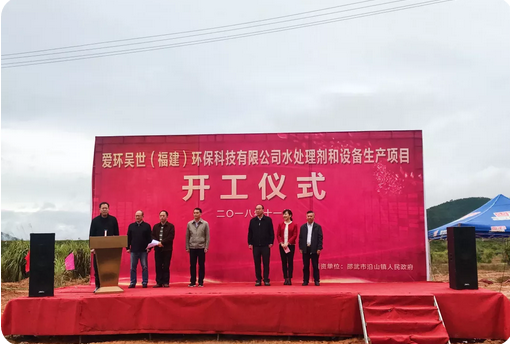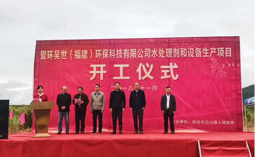 2018年11月21日,愛環(huán)吳世(蘇州)環(huán)保股份有限公司全資控股福建子公司在邵武金塘工業(yè)園區(qū)內(nèi)投資建設(shè)的環(huán)保型水處理生產(chǎn)和智能設(shè)備制造項(xiàng)目舉行開工奠基典禮儀式。