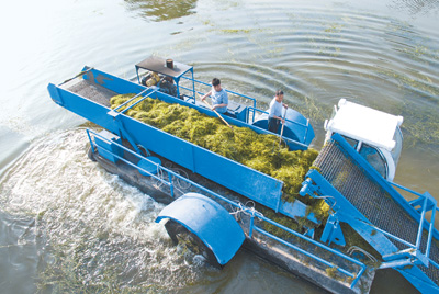 圖為5月10日,工人正在清理淄河水草。崔立來(lái)攝