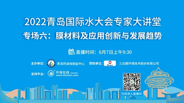 “2022青島國(guó)際水大會(huì)專(zhuān)家系列大講堂”接力第七場(chǎng)——凈水行業(yè)高端論壇將于6月14日上午登陸環(huán)保在線!緊跟海水淡化、工業(yè)節(jié)水與污水資源化、城鎮(zhèn)水務(wù)、水資源可持續(xù)、水環(huán)境治理、膜材料等議題的熱度,凈水行業(yè)的當(dāng)下與未來(lái),誠(chéng)邀業(yè)界同仁共探共論。(點(diǎn)擊圖片,即...