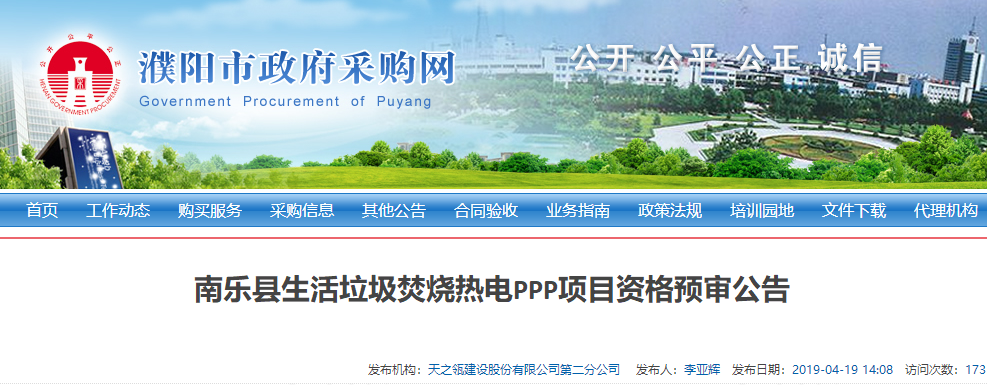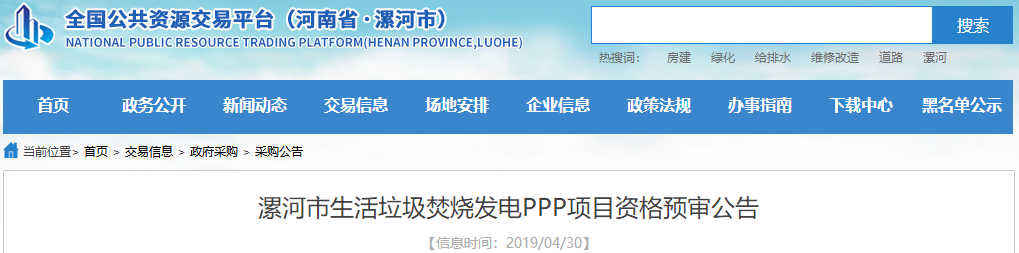 中國環(huán)聯(lián)網(wǎng)獲悉,4月19日,河南濮陽南樂縣生活垃圾焚燒熱電PPP項目發(fā)布資格預(yù)審公告,采購控制價為每噸垃圾補貼費不超過62.87元。項目概況及采購內(nèi)容項目名稱:南樂縣生活垃圾焚燒熱電PPP項目。項目編號:HNTZL-2019-016采購方式:公開招標。項目概況:本項目設(shè)計日處理垃圾量為600噸/日,...