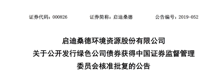 日前,中國環(huán)聯(lián)網(wǎng)獲悉,啟迪桑德發(fā)布公告稱,公司擬發(fā)行不超過50億綠色公司債已經(jīng)獲得證監(jiān)會批復(fù)。詳情如下:2019年4月30日,啟迪桑德環(huán)境資源股份有限公司(以下簡稱“公司”)收到中國證券監(jiān)督管理委員會(以下簡稱“中國證監(jiān)會”)出具的《關(guān)于核準啟迪桑德環(huán)境資源股份有限公司向合格投資者公開發(fā)行綠色公司債...