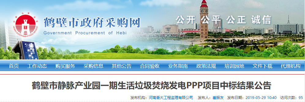 中國環(huán)聯(lián)網(wǎng)獲悉,5月29日,河南省鶴壁市靜脈產(chǎn)業(yè)園一期生活垃圾焚燒發(fā)電PPP項目發(fā)布中標結(jié)果公告,河南城發(fā)環(huán)境股份有限公司(牽頭人)、上海康恒環(huán)境股份有限公司、中國電建集團河南工程有限公司組成的聯(lián)合體成為中標的社會資本方。主要成交條件:1、總投資概算:項目總投資 57570.52萬元2、項目合作期限...