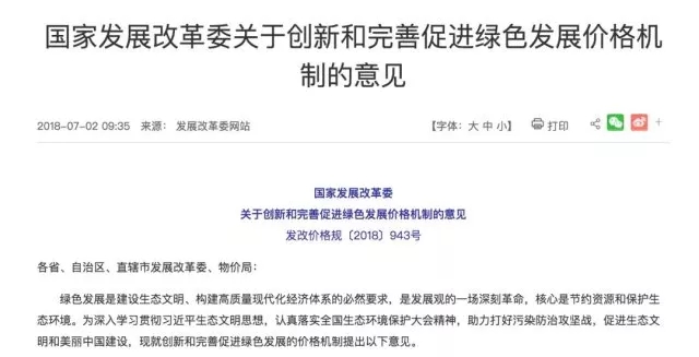 7月2日,國家發(fā)改委發(fā)布《關(guān)于創(chuàng)新和完善促進(jìn)綠色發(fā)展價格機(jī)制的意見》(下稱《意見》),提出到2020年,有利于綠色發(fā)展的價格機(jī)制、價格政策體系要基本形成,促進(jìn)資源節(jié)約和生態(tài)環(huán)境成本內(nèi)部化的作用明顯增強(qiáng);到2025年,適應(yīng)綠色發(fā)展要求的價格機(jī)制要更加完善,并落實到全社會各方面各環(huán)節(jié)。來源:華夏時報記者...