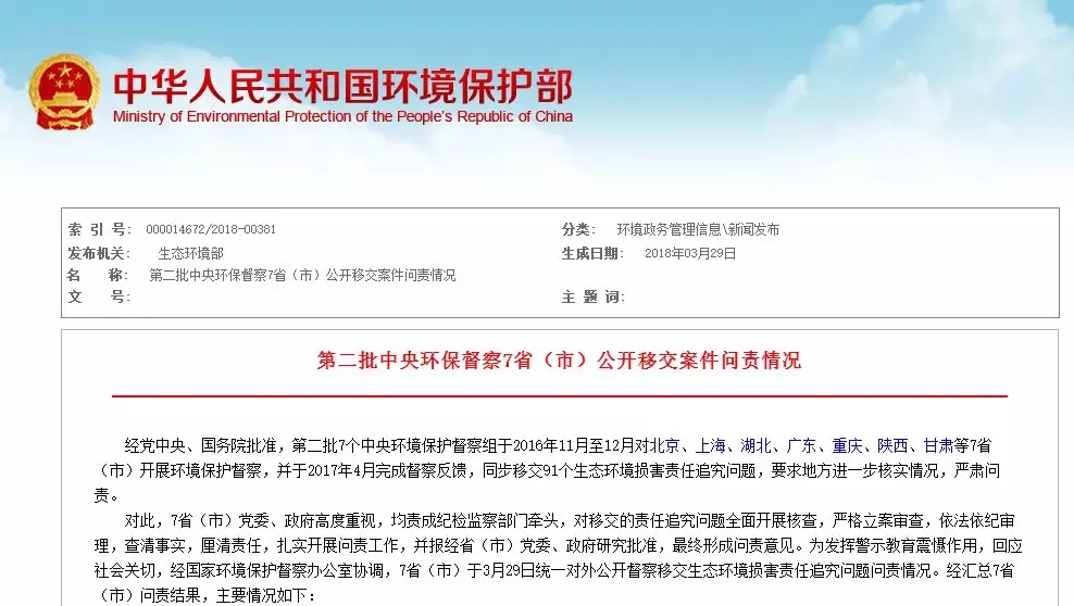 經(jīng)黨中央、國務(wù)院批準(zhǔn),第二批7個中央環(huán)境保護督察組于2016年11月至12月對北京、上海、湖北、廣東、重慶、陜西、甘肅等7省(市)開展環(huán)境保護督察。3月29日,北京、上海、湖北、廣東、重慶、陜西、甘肅等7省(市)對外公開了第二批中央環(huán)保督察移交生態(tài)環(huán)境損害責(zé)任追究問題問責(zé)情況。七省市共問責(zé)1048人...