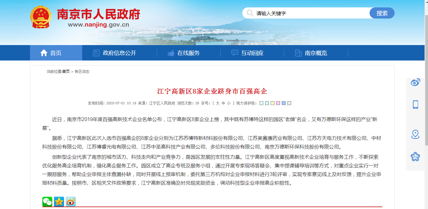 ——新的榮譽(yù)、新的“百強(qiáng)”、新的起航,萬德斯入選“江蘇省百強(qiáng)創(chuàng)新型企業(yè)”、“南京市百強(qiáng)高新技術(shù)企業(yè)”近日,江蘇省科技情報(bào)研究與江蘇省科技發(fā)展戰(zhàn)略研究院分別發(fā)布了“南京市2019年度百強(qiáng)高新技術(shù)企業(yè)”名單、“2019年江蘇省百強(qiáng)創(chuàng)新型企業(yè)”名單,南京萬德斯環(huán)保科技股份有限公司同時(shí)位列兩張榜單之中,成為...