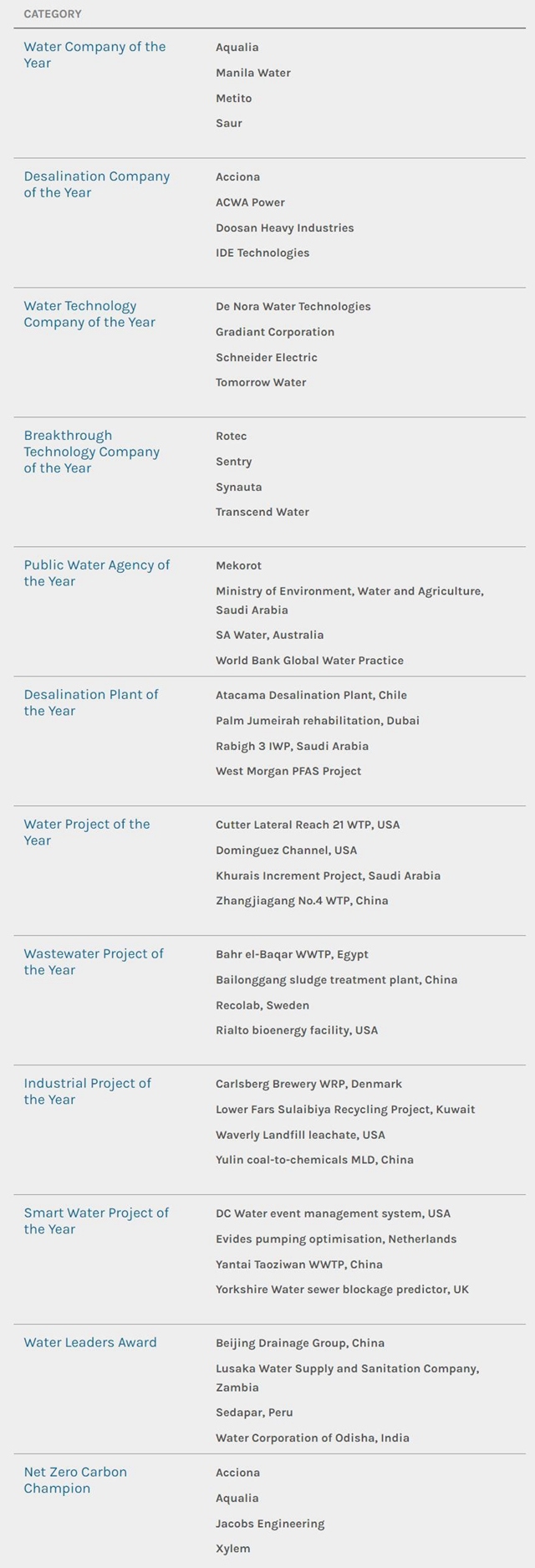 日前,GWI(Global Water Intelligence國際水務(wù)智庫)發(fā)布了“2022全球水獎(jiǎng)”入圍名單,最終2022 Global Water Awards獲獎(jiǎng)?wù)邔⒂?月17日的Global Water Summit上宣布。 入圍名單涉及海水淡化、水務(wù)科技、水務(wù)工程...