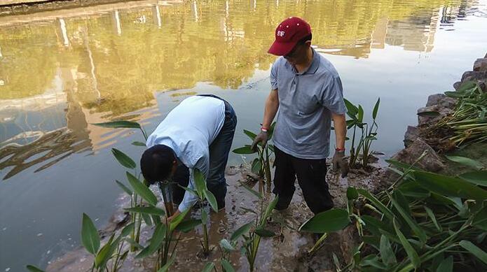 5月27日,位于長(zhǎng)寧區(qū)臨空經(jīng)濟(jì)園區(qū)的聯(lián)涇港迎來了一批綠色的“來客”——上百株再力花和金魚藻。在上海環(huán)保系統(tǒng)工作人員的幫助下,這些具有凈水功能的植物或沉入水底,或栽在河灘上。上海市環(huán)保局的工作人員把再力花栽入河灘治理河道有一定的“套路”,據(jù)長(zhǎng)寧區(qū)建交委副主任陳崗介紹,一般先要斬?cái)嗪拥赖耐庠次廴?,即河?..