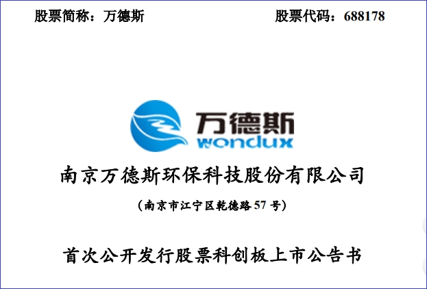 南京萬德斯環(huán)保科技股份有限公司距離登陸科創(chuàng)板上市更進一步。 12月23日晚間,萬德斯發(fā)布科創(chuàng)板上市招股意向書、上市發(fā)行安排及初步詢價公告,正式啟動招股。發(fā)行人股票簡稱“萬德斯”,擴位簡稱為“萬德斯環(huán)保”,股票代碼為“688178&rdquo...