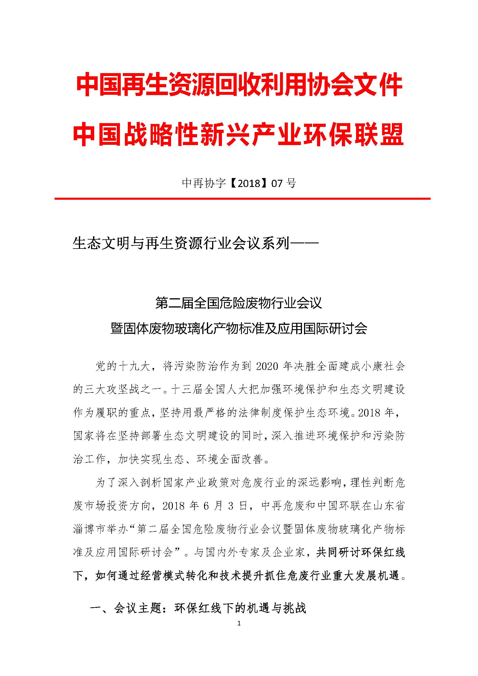 為了深入剖析國家產(chǎn)業(yè)政策對危廢行業(yè)的深遠影響,理性判斷危廢市場投資方向,2018年6月3日,中再危廢和中國環(huán)聯(lián)在山東省淄博市舉辦“第二屆全國危險廢物行業(yè)會議暨固體廢物玻璃化產(chǎn)物標準及應(yīng)用國際研討會”。與國內(nèi)外專家及企業(yè)家,共同研討環(huán)保紅線下,如何通過經(jīng)營模式轉(zhuǎn)化和技術(shù)提升抓住危廢行業(yè)重大發(fā)展機遇。會...