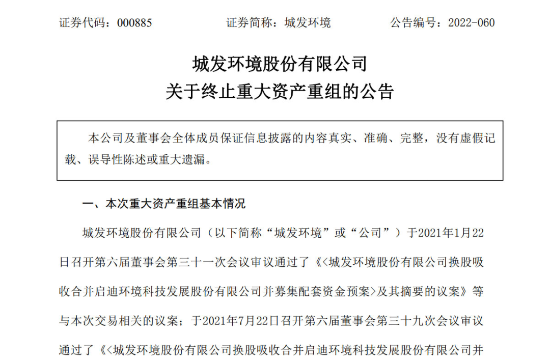 據(jù)公告顯示,終止本次重大資產(chǎn)重組的原因是城發(fā)環(huán)境自籌劃本次重大資產(chǎn)重組事項以來,嚴格按照相關(guān)法律法規(guī)的要求,與交易對方及其他相關(guān)雙方持續(xù)進行磋商與研討,并根據(jù)磋商結(jié)果積極推進相關(guān)盡職調(diào)查、審計、信息披露、內(nèi)部決策等工作。鑒于本次重大重組方案論證歷時較長,相關(guān)市場環(huán)境較本次交易籌劃之初發(fā)生較大變化。經(jīng)...