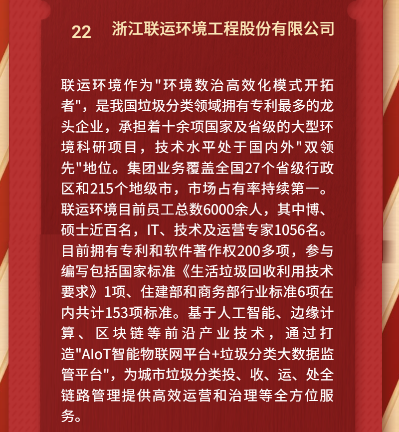 日前,浙江省智慧城市促進會開展的“2021年度浙江省智慧城市建設先進單位、創(chuàng)新人物及浙江省智慧城市促進會突出貢獻獎”評選活動結果正式揭曉,聯(lián)運環(huán)境憑借在垃圾分類智能化監(jiān)管平臺領域的技術產(chǎn)品及解決方案的出色表現(xiàn),入選“2021年度浙江省‘智慧城市’先進單位”名單。 近年來,杭州市臨平區(qū)城市生活垃圾產(chǎn)生...